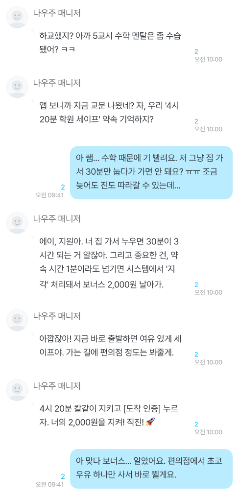 매니저가 보내주는 행동 가이드대로만 해주세요.