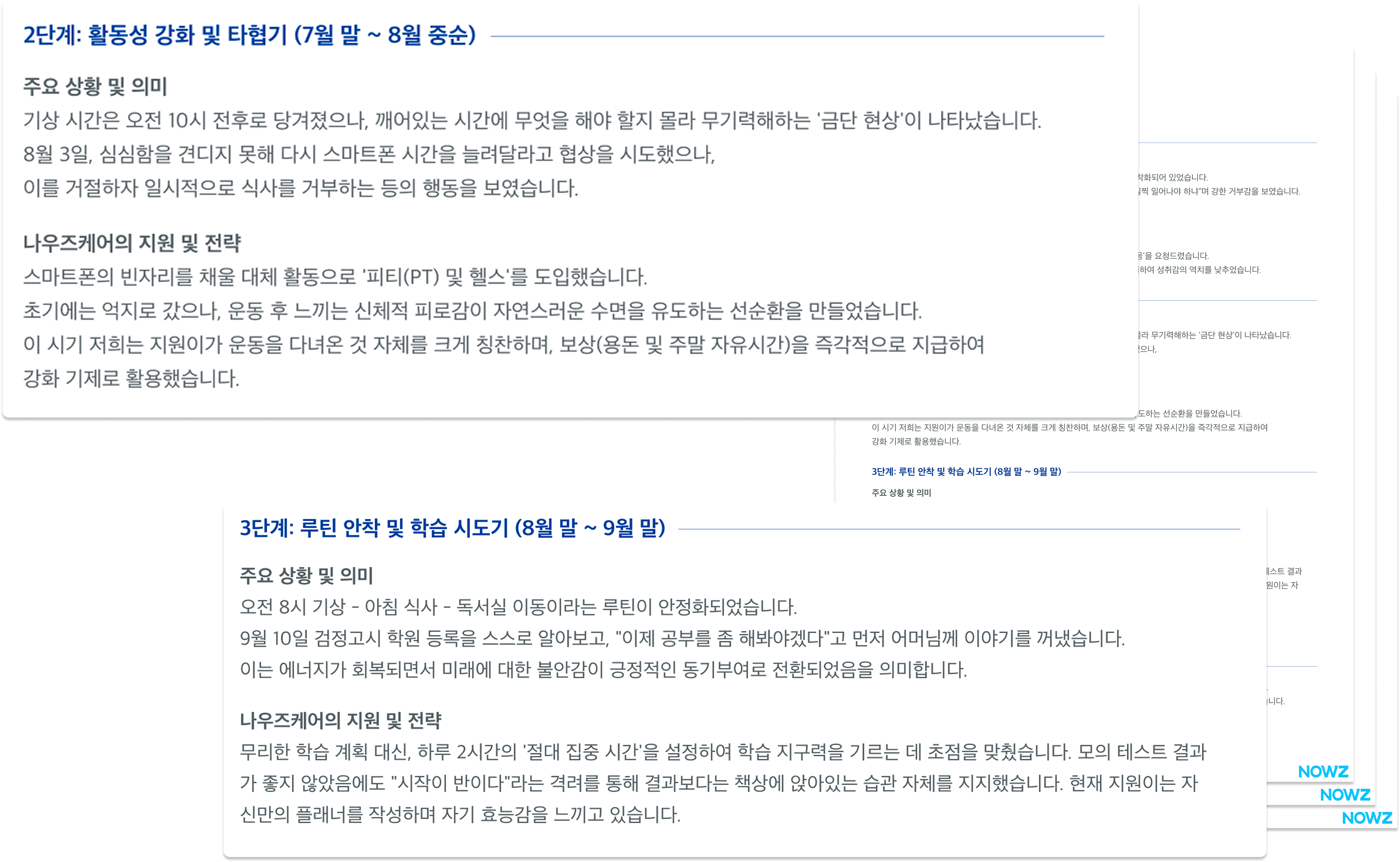 자녀의 심리, 행동데이터, 변화추세, 향후 예상을 분석하여